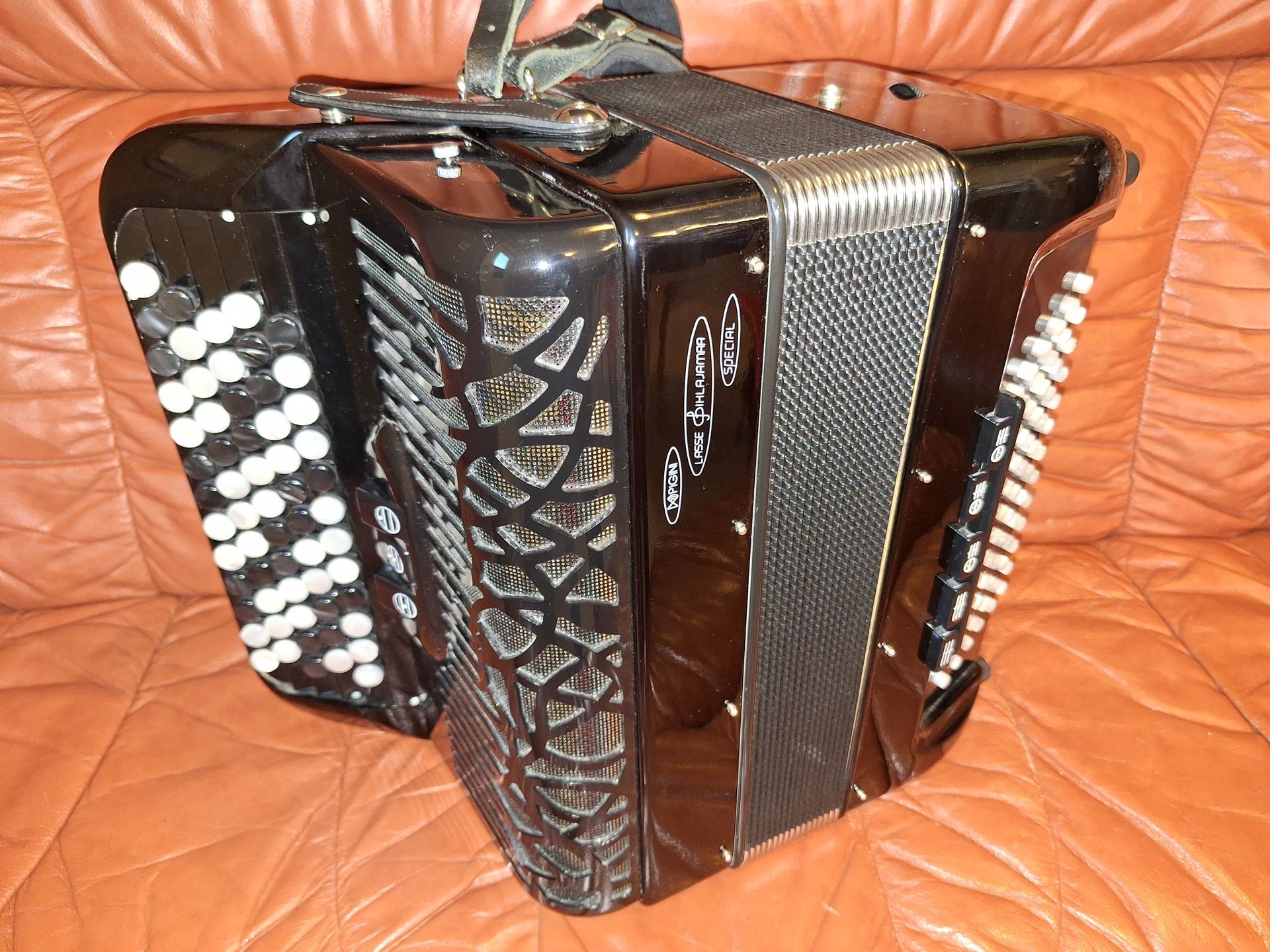 Näppärä isolla äänialalla. 37 soivaa diskanttiääntä ja 37 melodiabassoääntä. 78 standardibassonappulaa.